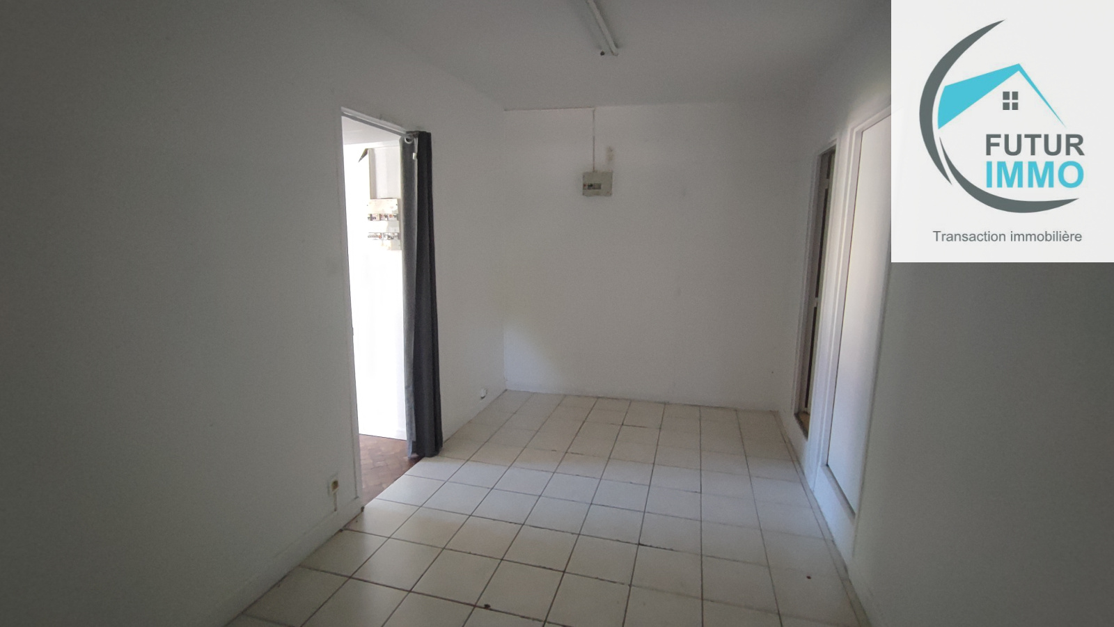 Entrée sur Baies vitrées (Verre sécurit) grande pièce 40m2 env. - 1 Bureau - 2 réserves (1ère réserve avec accès sur WC et lave-mains) 2ème réserve : Stockage.