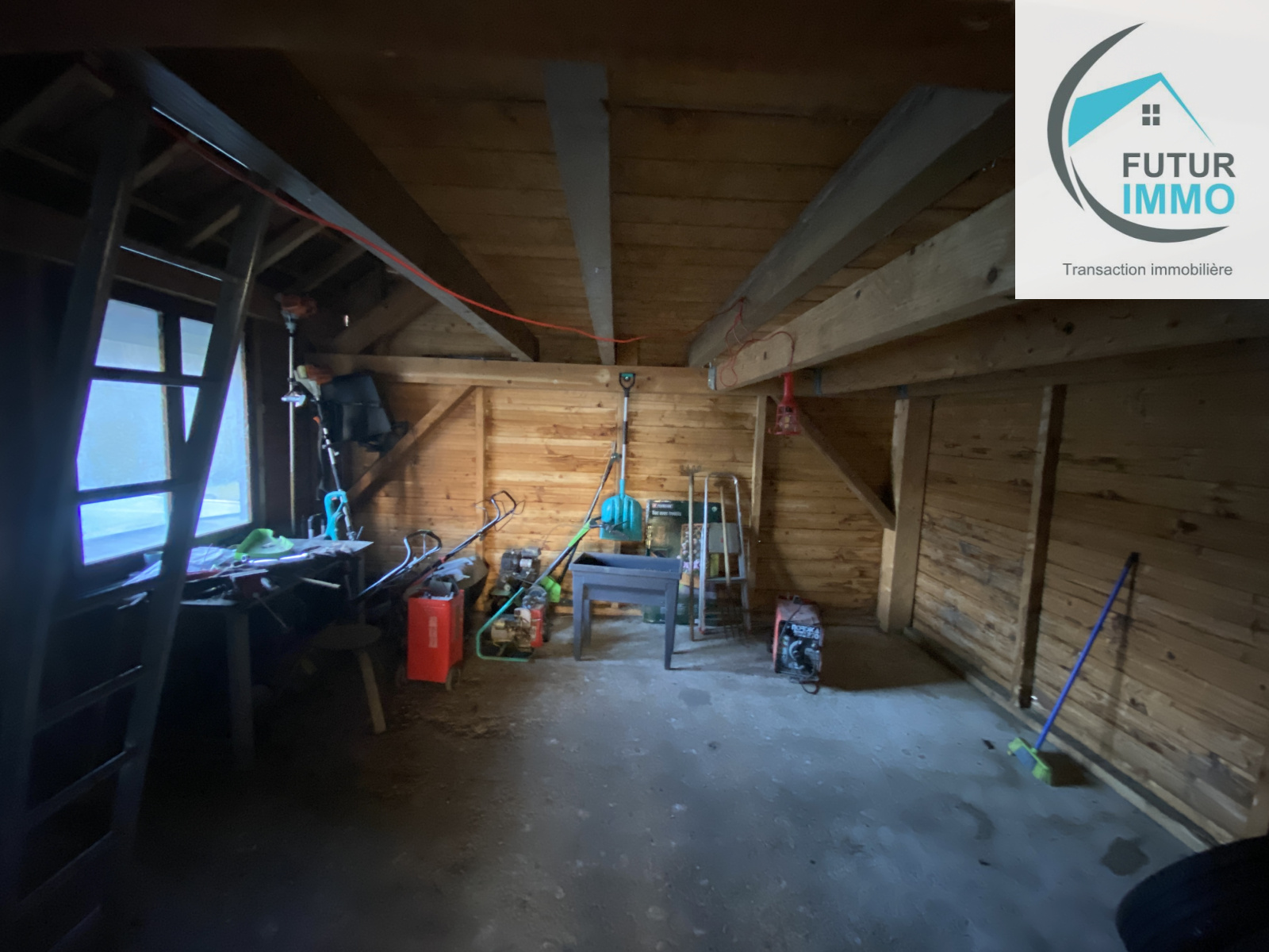 Dépendance (50 m2 env): Garage (2v, porte avec portillon), abri bois, abri d’outillage de jardin avec porte d’accès extérieur.